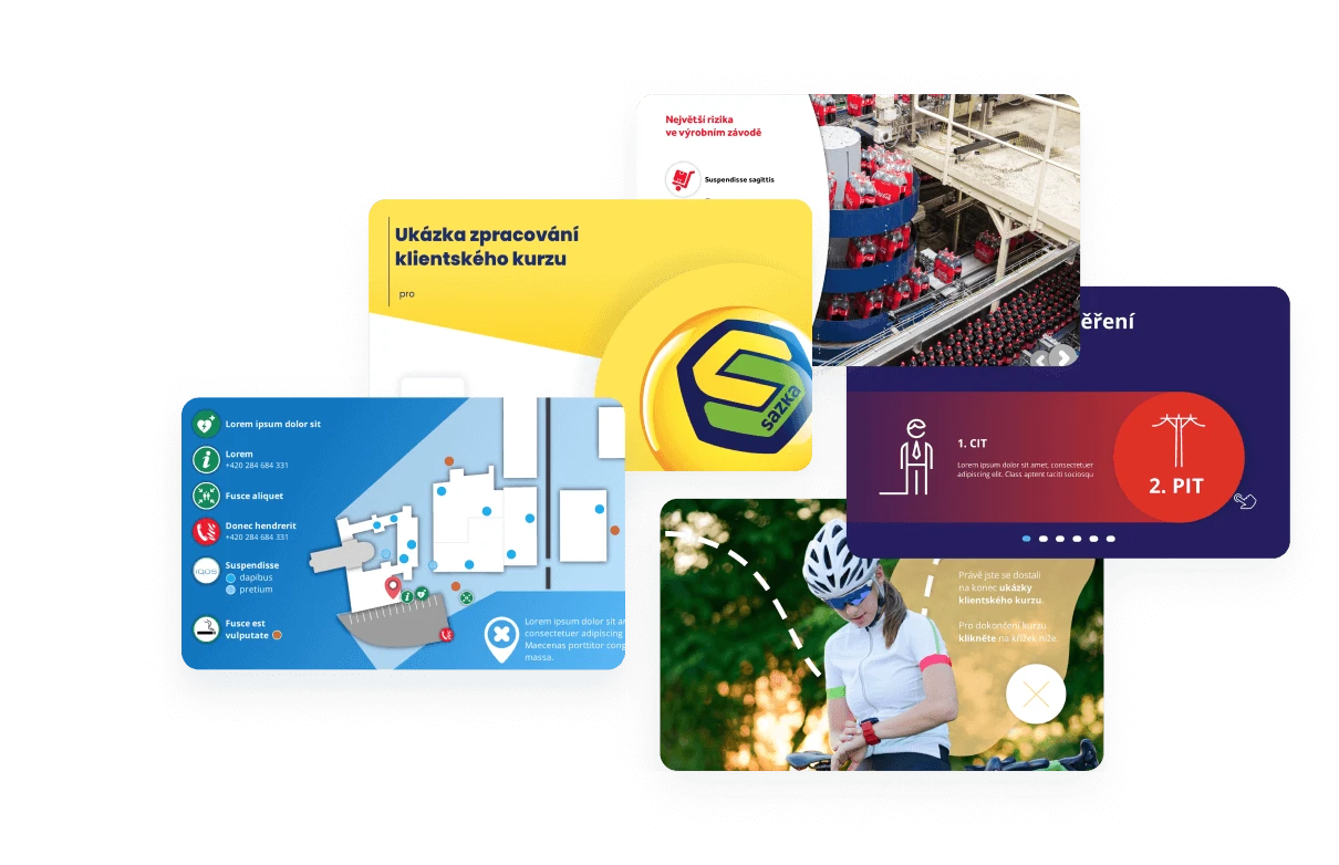 Vyberte si i z dostupných on‑line kurzů nebo si nechte zpracovat profesionální kurz na míru. Veškeré naše kurzy, kurzy na míru i vlastní kurzy je možné do aplikace kdykoliv přidávat.